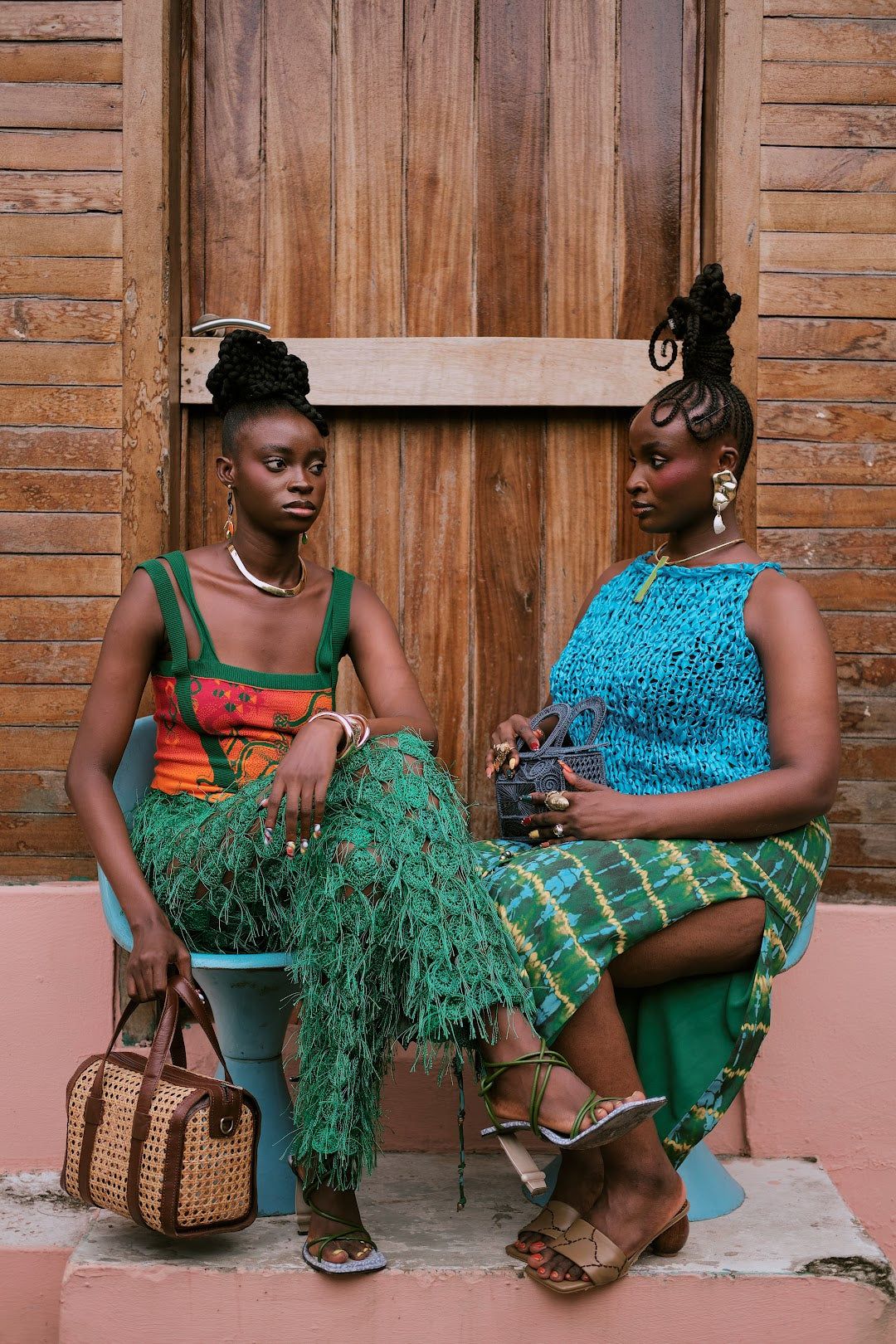 The Ribbon Top, crafted from hand-knitted ribbons sourced near their Mexico City showroom. These vibrant textiles, rescued from a closing stationery store, bring a silky-soft texture and unique visual appeal to each piece.